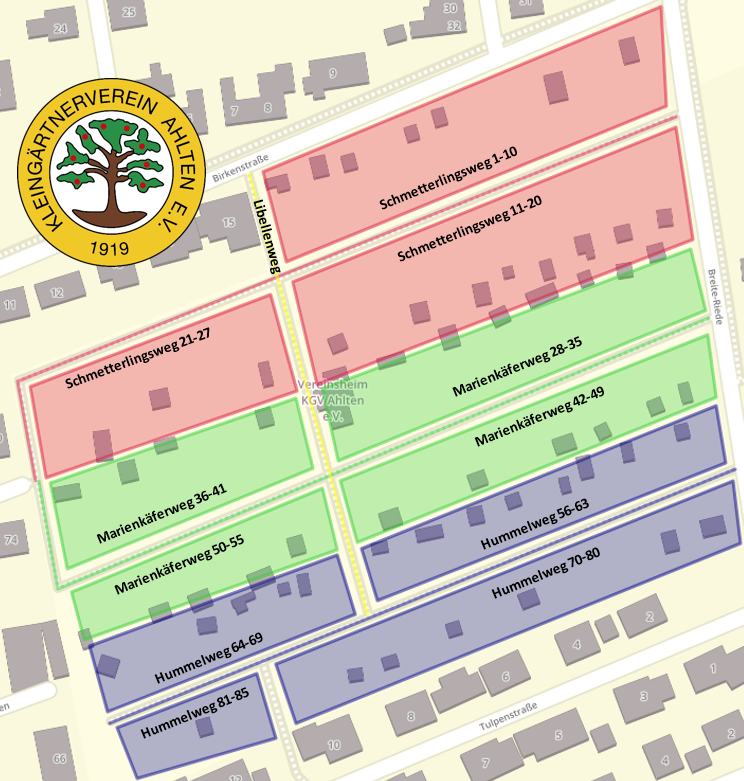 Am Ende dieser Seite finden Sie den Lageplan der Kolonie "Gemeinschaftsruh". Der Bienenweg in der Kolonie "Mühlengärten" besteht aus nur einem Weg mit den Gärten 1-42.